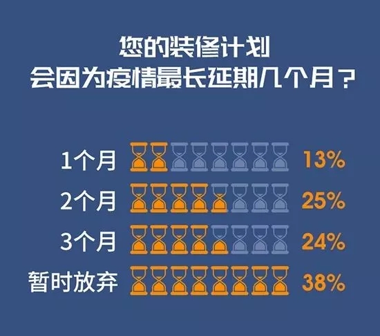 雖然目前疫情仍然比較嚴(yán)重,但是只有38%的家庭表示會(huì)放棄原來的裝修計(jì)劃。也就是說,6成以上家庭不會(huì)因?yàn)橐咔槎艞壯b修。