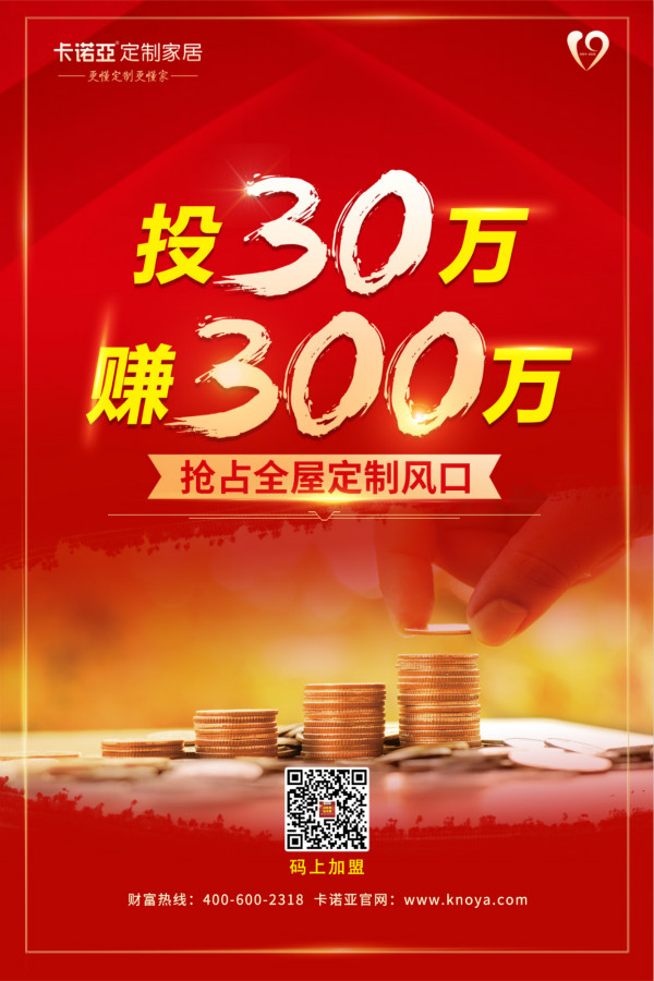 然而,這突如其來的疫情,既是機遇,也是挑戰(zhàn),現(xiàn)在機會來了!卡諾亞定制家居“更懂定制更賺錢”卡諾亞VIP財富分享會線上線下均在火熱招募全國經(jīng)銷商,僅需30萬微投入,即可無憂經(jīng)營,帶你走上更加安全穩(wěn)健的創(chuàng)業(yè)道路!