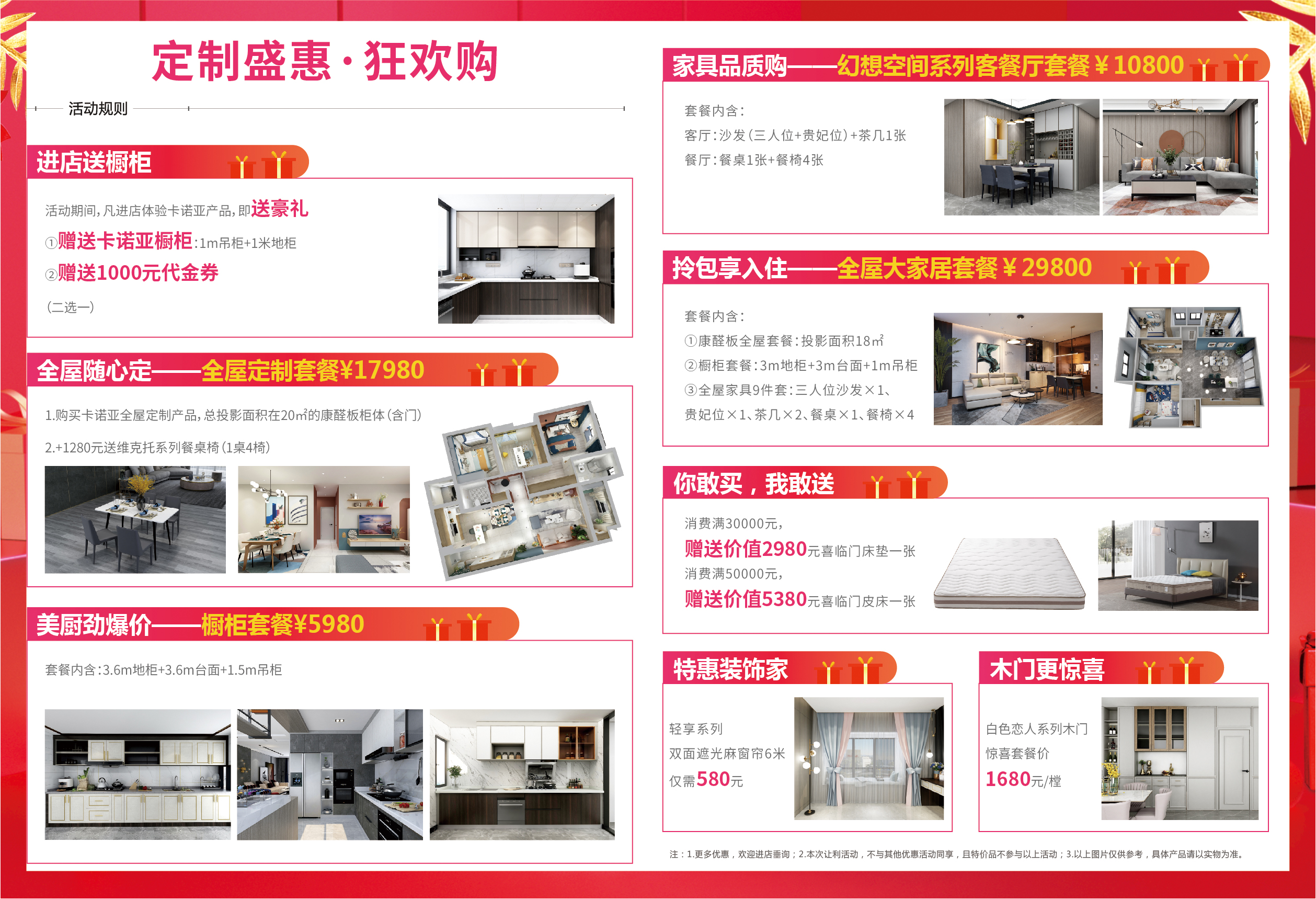 活動11月20日至12月12日晚24時截止,卡諾亞提前引爆雙十二,歡迎蒞臨卡諾亞當地門店咨詢、免費預約設計。在此預祝大家節日快樂,理性消費不剁手,買到健康環保的定制家居,以及高性價比的好物,早日實現新年住新家的愿望。